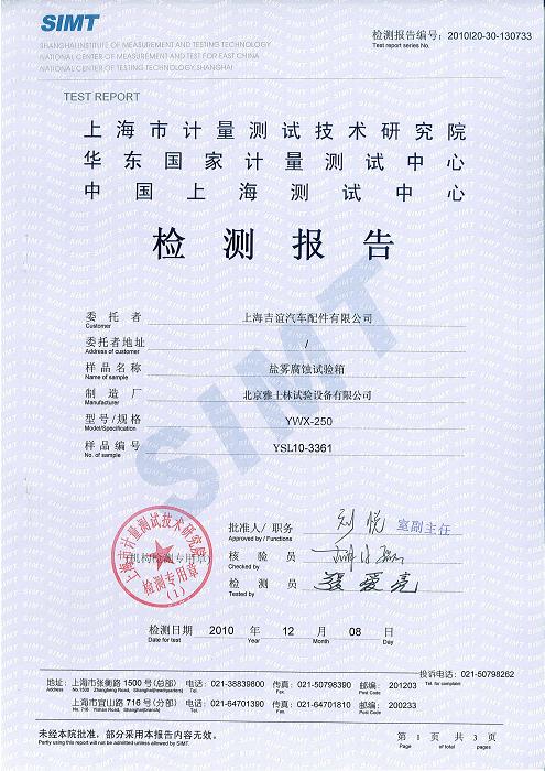 >>鹽霧腐蝕試驗箱檢測報告-上海計量院-吉誼汽車