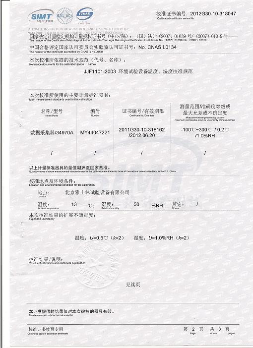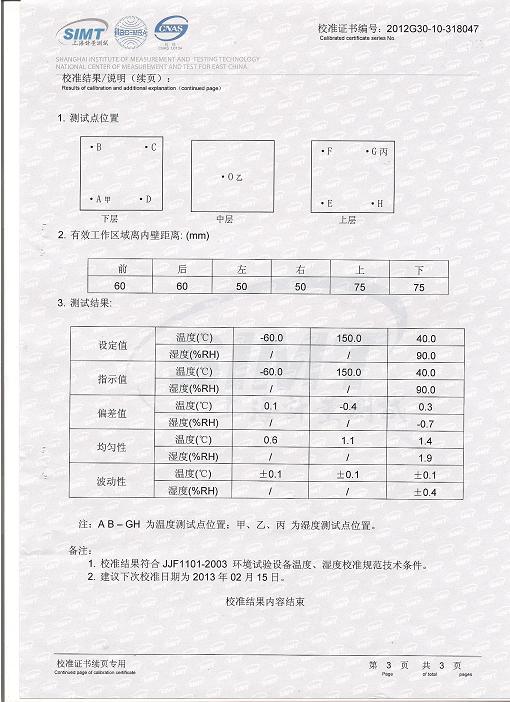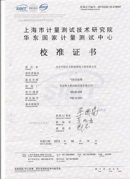 >>氣候試驗箱校準證書-上海計量院-中核控制1