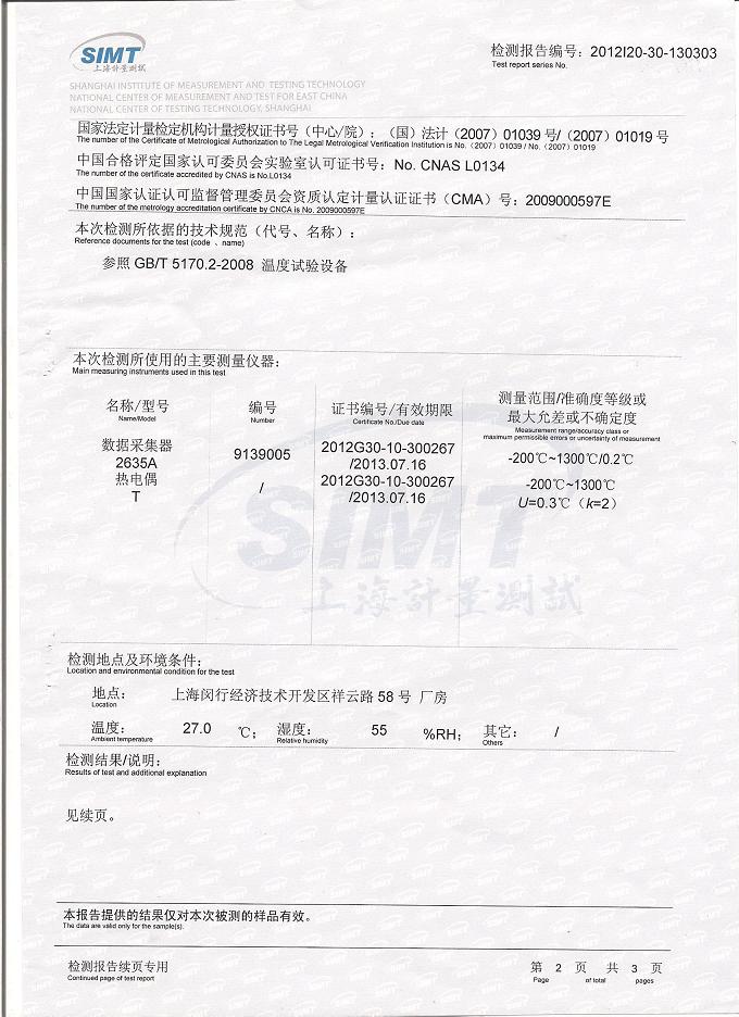 >>高低溫試驗(yàn)箱檢測(cè)報(bào)告-上海計(jì)量院-勝利油田