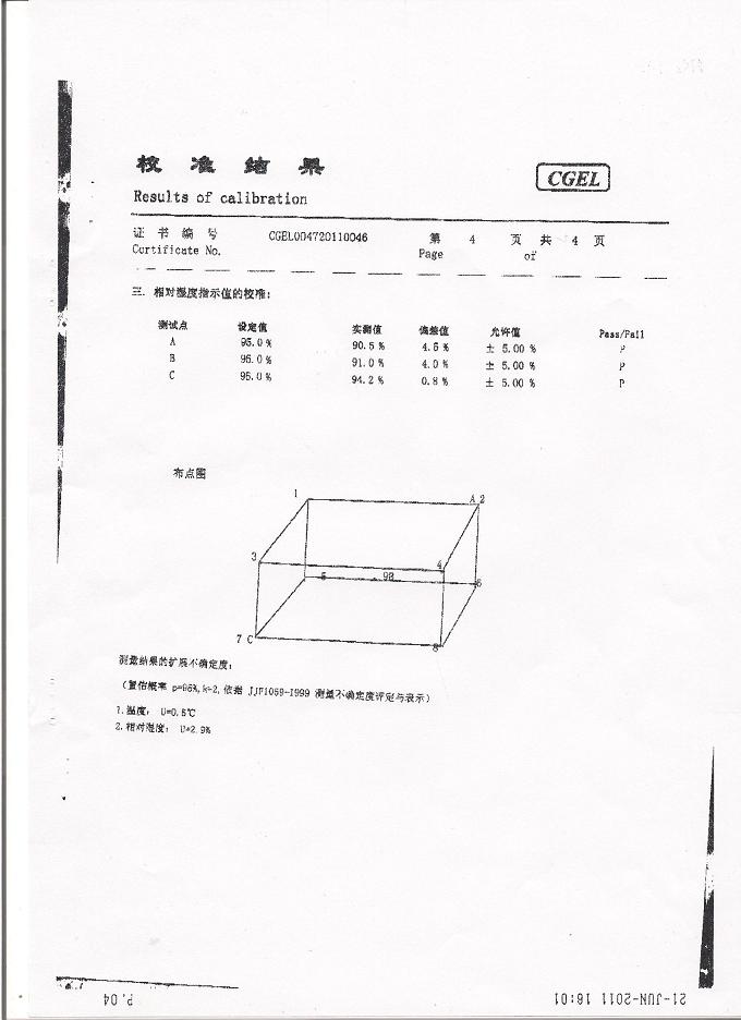 >>高低溫交變濕熱試驗箱校準證書-廣東檢驗所-萬家樂