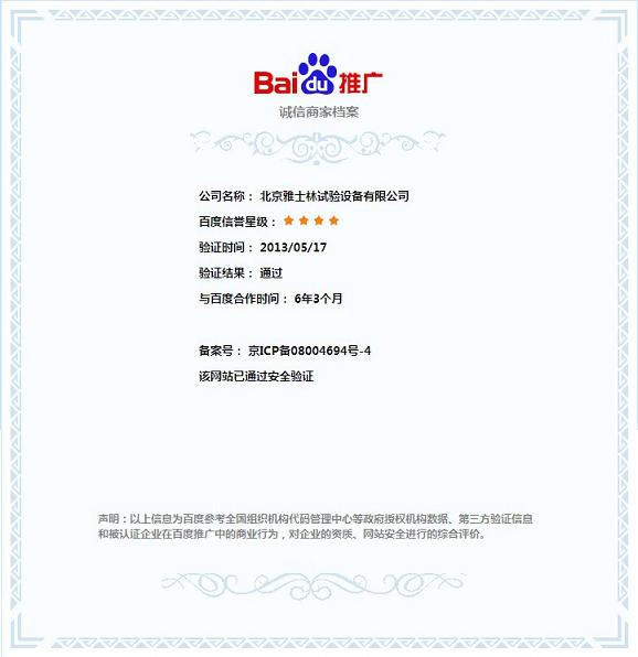 >>雅士林儀器榮膺百度誠信商家認證